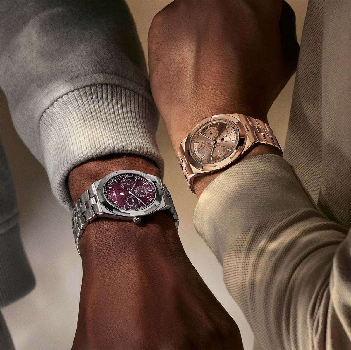 Dünyanın en önemli saat üreticilerinden Vacheron Constantin Oversaeas koleksiyonuna iki kadran rengi ekledi. Overseas Perpetual Calender Ultra Thin modellerinde pembe altın ve Burgundy olarak adlandırılan son dönemin flaş kadran rengi de kullanılıyor. 41.5 mm çapındaki bu sanat eseri 8.1 mm kalınlığında. İn House olarak adlandırılan kendi kalibresiyle can bulan 1120/QP1 olarak adlandırılan saat 2100 yılına kadar herhangi bir tarih düzenlemesine de ihtiyaç duymuyor. 18 ayar altın bilezik entegre görüntüsüyle yine hayran bırakıyor