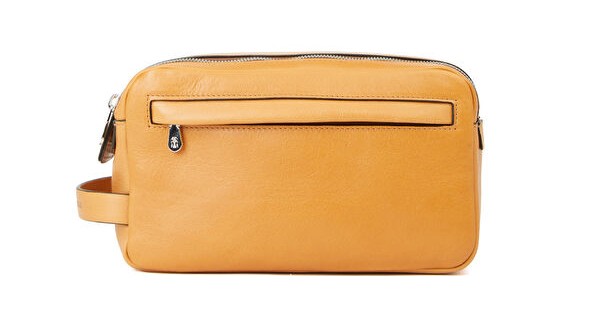 Kulplu, fermuar kapatmalı bu deri tıraş çantası, bir iç bir de dış cebe sahip. Tasarımın fark yaratan kısmı ise şüphesiz ki hardal sarısı rengi.