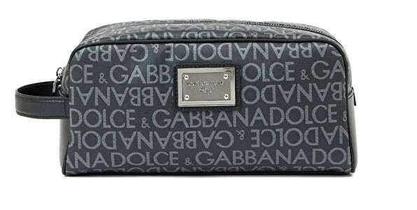 Fermuar kapamalı ve elde rahat taşınabilir askısıyla Dolce&Gabbana tıraş çantası logo desenli pamuklu kumaştan tasarımıyla çok daha spor bir model.