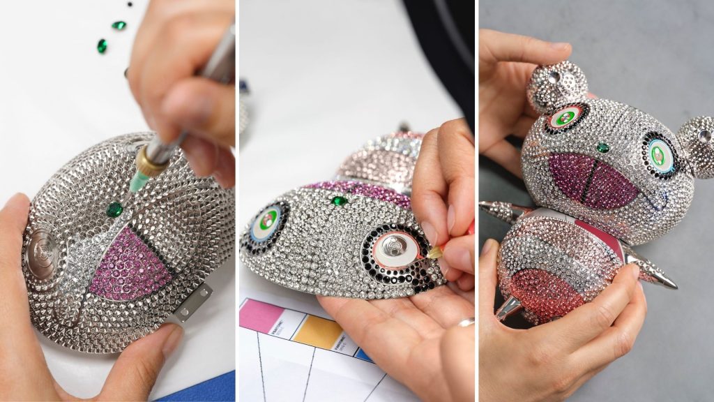 Yeni Artycapucines koleksiyonu, Murakami’nin karakteristik motifleri olan Smiling Flowers, Panda, Mr. DOB ve Plush Balls serisinin evriminden doğan 11 benzersiz çantadan oluşuyor. Her parça, Louis Vuitton’un zanaat mirasını 3D baskı, el nakışı ve yenilikçi malzeme teknikleriyle birleştirerek adeta bir “taşınabilir sanat eseri”ne dönüştürüyor. Serginin finalinde yer alan, tamamen taşlarla işlenmiş Panda Clutch, Murakami’nin Maison ile bağını sembolize eden en çarpıcı eser olarak öne çıkıyor. Art Basel Paris’teki bu sunum, markanın sanatsal iş birliklerinde ulaştığı en iddialı doruklardan biri olarak tarih yazıyor.