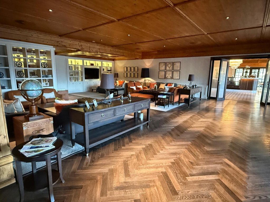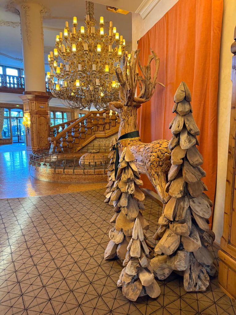 Otele adım attığınız anda, neredeyse bir sarayı andıran mimari sizi karşılıyor. Ahşap oymacılığının hâkim olduğu devasa lobi, adeta bir Avusturya sarayının modern yorumu gibi. Otelin hemen önünde yer alan ısıtmalı açık havuz ise kar yağışı altında eşsiz bir deneyim sunuyor. Yukarıdan kar taneleri süzülürken sıcak suyun içinde olmak, tam anlamıyla filmlerden fırlamış bir sahne.